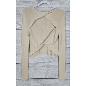 Zara Twist Open Back Long Sleeve Knit Top Cream Size Medium