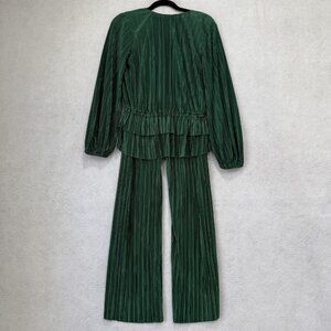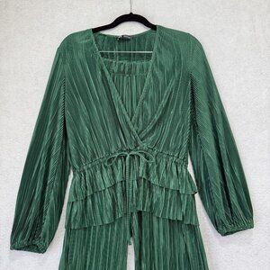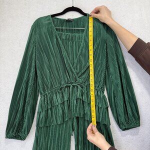 Zara Two Piece Set Womens Small Green Pleated Wrap Top Wide Leg Pants Peplum