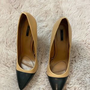 Zara Two Toned Capped Toe Chunky Heels Size 40