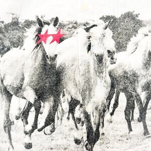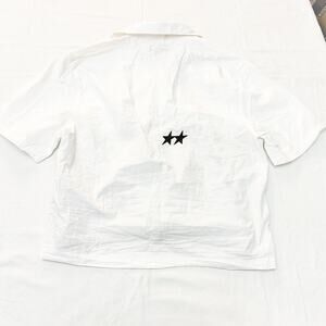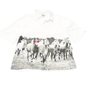 Zara TwoJeys Printed Cowboy Denim Button Down White Shirt Size Medium