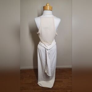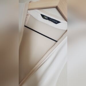 Zara Unique Elegant White Cream Back Transparency and Bow Side Ziper Light Dress