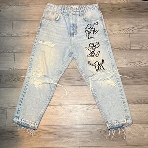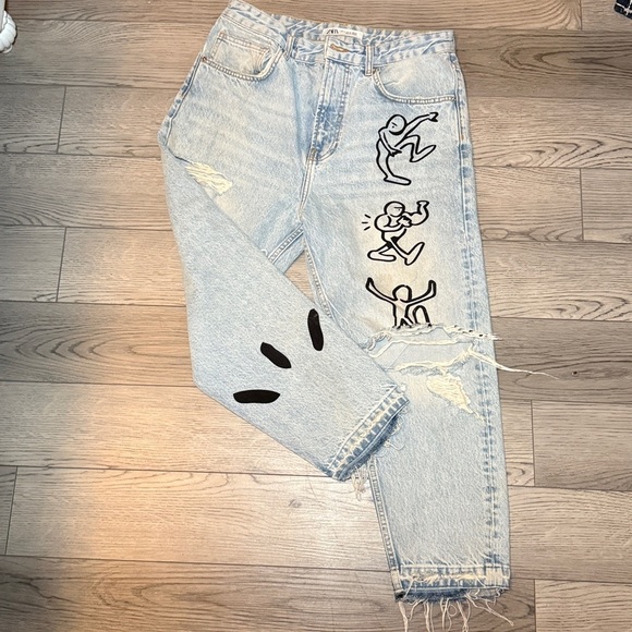 Zara Unisex Destroyed Graffitti Jeans Loose Fit Distressed Size 32