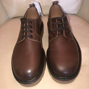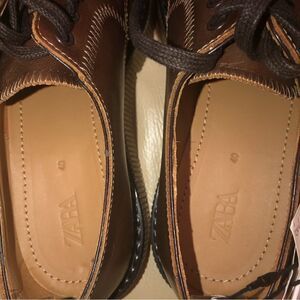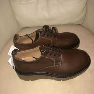 Zara Unisex Leather Brown Chunky Heel Loafers M 7