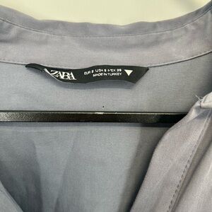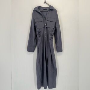 Zara Utility Button Front Ruched Gathered High Slit Pocket Shirt Midi Dress