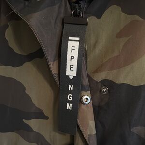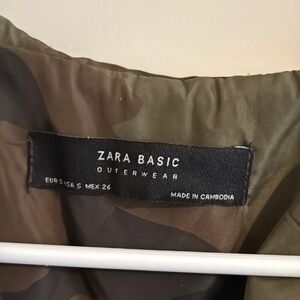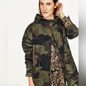 This Zara utility jacket offers a stylish blend of green and black tones, perfect for a modern look. Its relaxed fit and attached hood make it an ideal choice for layering during cooler days.