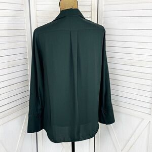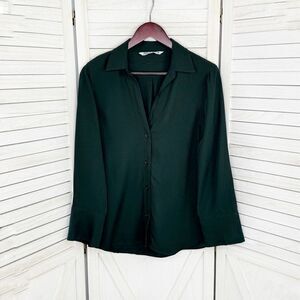 Zara V Neck Button Front Shirt Blouse Dark Green Small Long Sleeve