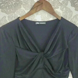 Zara V neck Cropped Long sleeve Twisted Black M 2765