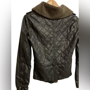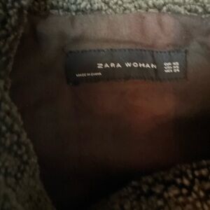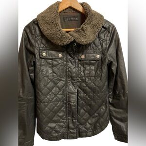 Chic quilted puffer jacket by Zara. Features a warm brown fur collar. Ideal for cold weather.