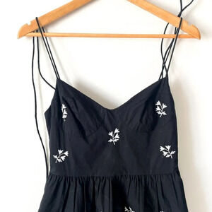 Zara V-Neck Embroidered Floral Poplin Dress Black White NWT Size Medium
