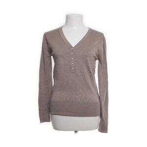 Zara V-Neck Sweater Long Sleeves Brown Pearl Buttons Fishbone Knit SZ S Soft