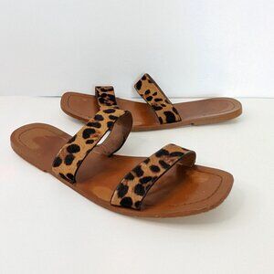 Zara Vegan Leather Flat Sandals Animal Leopard Print Straps