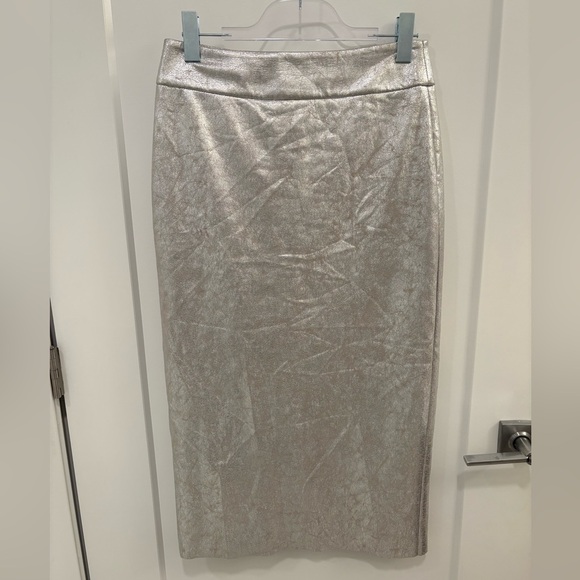 Zara Vegan Leather Metallic Silver Crinkle Skirt With Slit Size Small