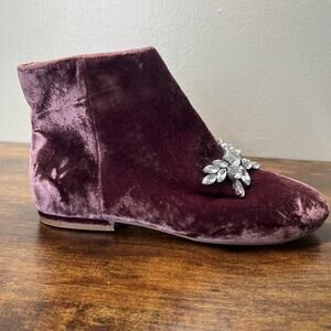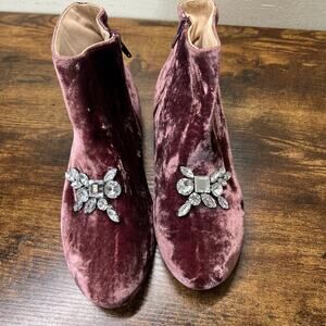 Zara Velvet Boots 4 Girls 37 Mauve Rhinestone Ankle Booties Jeweled Slip On Kids