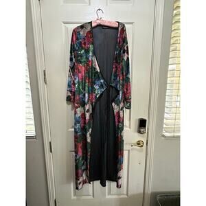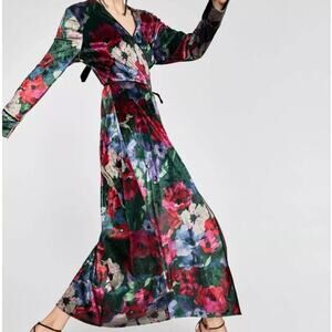 Zara Velvet Floral Boho Plush Velour Long Sleeve Maxi Wrap Dress Size Medium