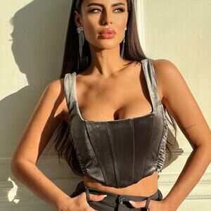 Zara Velvet Grey Corset Bustier Influencer Fave Crop Top Size Medium