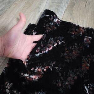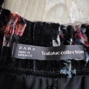 Zara floral Velvet like pants size small see pics for verification of size used no holes or stains may have some fading of the flower print measurements approximately flat lay waist 14 1/2 front rise 10 inseam 26 1/2