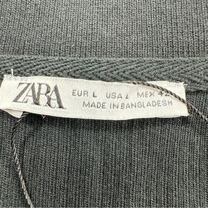 Zara Vertical Textured Polo Shirt Women’s Large Short Sleeve Ribbed Black