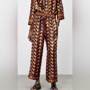 Zara Vibrant Pajama Style Drawstring Elastic Waist Pants Size XS