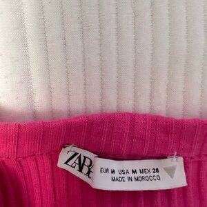 Bright pink ribbed top by Zara. Eye-catching and stylish.