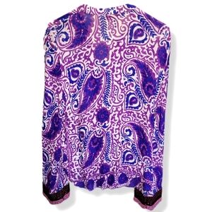 Zara Vibrant Purple Paisley Boho Long Sleeve V Neck Blouse with Beaded Sleeves