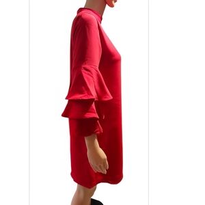 Chic red dress with layered sleeves. Ideal for stylish outings.