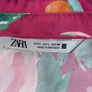 Zara Vibrant Satin Floral Women's collared button down shirt dress Large