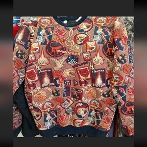 Zara Vintage Men Jacquard Quilted Stranger Emotions Printed Pullover Sweatshirt