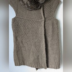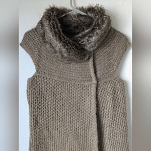 Zara Vintage Neutral Faux Fur Trim Collar Wool Blend Knit Vest Winter Layering