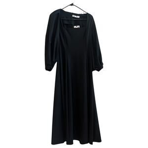 Zara Voluminous Balloon Sleeve Square Neck Midi Dress Black Size M