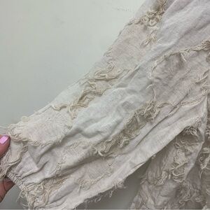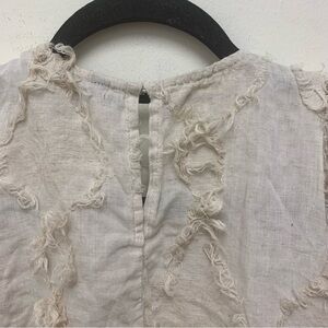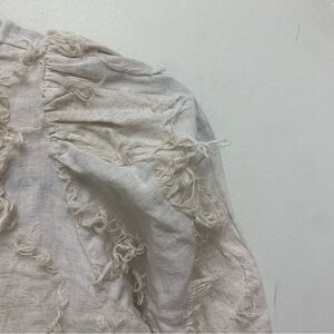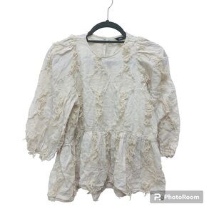 Adorable Zara Voluminous Fringe Blouse. Big texture and slight pattern. Puff sleeves. Keyhole back. Lightweight fabric. Peplum.