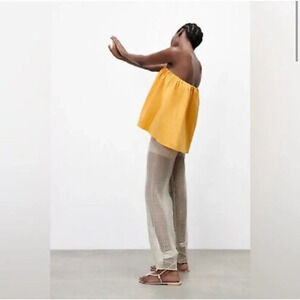 Zara Voluminous Strapless Balloon Flare Bubble Top Butter Yellow Size Large NWT