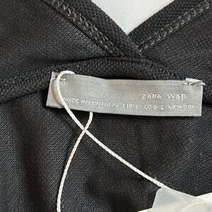 Zara W & B Long Sleeve V-Neck Semi-Sheer Black Delicate Blouse Top Size L