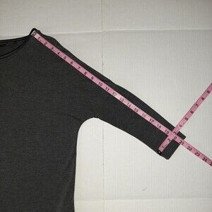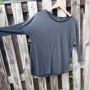 Zara W&B Collection Grey Top Back Zip Faux Leather Trim Dolman Bat Sleeve Size S
