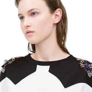 Zara W/B Collection Rhinestone Beaded Jewel White Black Sweater Dress Size S