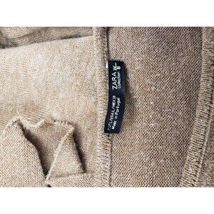 Zara W/B Collection Woman's Ruffle-Sleeve Cold Shoulder Sweater Tan (Size L)