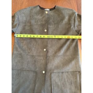 Zara WB Collection Women's Faux Suede Coat Sz S Jacket Snap Closure Olive Brown