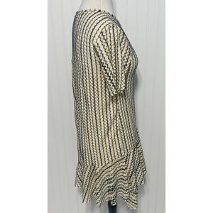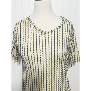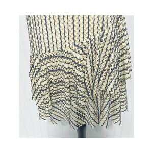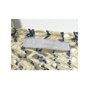 Zara W/B Dress Mesh Sheer Open Knit Unlined Ruffle Short Sleeve Cream Blue Small