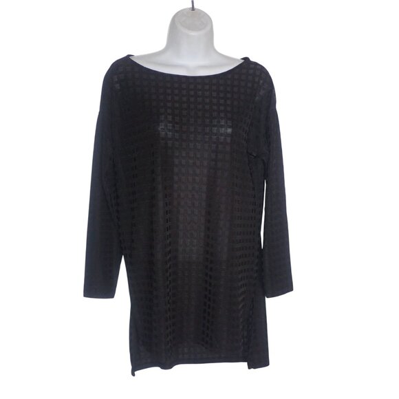 Zara W&B Women's Black Textured Stretchy 3/4 Sleeve Top Shirt Tunic Size M