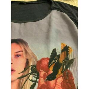 Zara WB Womens Black Pirple Gray Floral Woman Print Long Sleeve Top Large. Condition is Pre-owned. Shipped with USPS First Class Package. Length 28.5, bust 47, waist 45, hips 45. Measurements in inches. Perfect condition. Smoke and pet free home. Fast shipping. Tiny mark as shown in photo. May come out with cleaning.