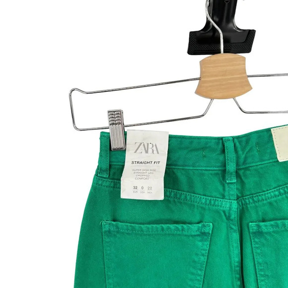 Brand new with tags Zara Washed Green Straight Cropped High Waisted Denim Jeans