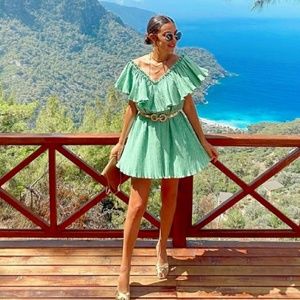 ๐ฑ Zara Washed Green Voluminous Pleated Dress ๐ฑ