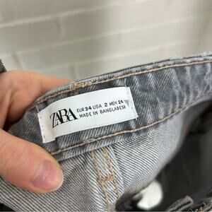 Zara Washed Grey Black Button Fly Distressed Denim Shorts Size 2