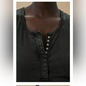 Washed-effect cotton blend top - never worn with tags. Round neck and sleeveless. Hidden snap front button closures.