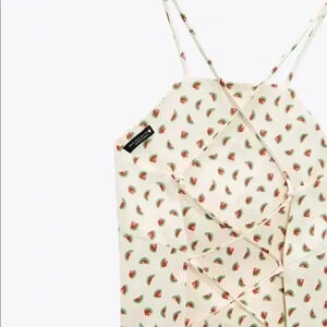 Zara Watermelon Print Satin Strappy Back Cropped Top Size S
