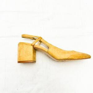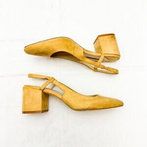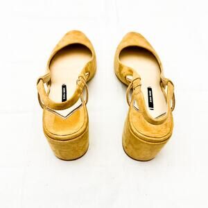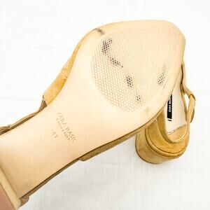 Zara Wheat Tan Slingback Almond Toe Pump Square Block Heeled Shoes Size 41/US 10