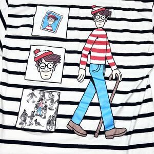 Zara Where's Wally Waldo Shirt Striped White Black Youth Size XL Adult XS