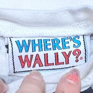 Introducing a Zara Where's Wally Waldo T-Shirt in white and black stripes, youth size XL equivalent to adult XS. This playful tee features classic striped styling with themed graphics, perfect for fans of the iconic character. Item is used and in good condition.