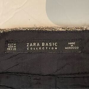 Zara White Black & Metallic Gold Tweed Disco Diva Mini Skirt Size M