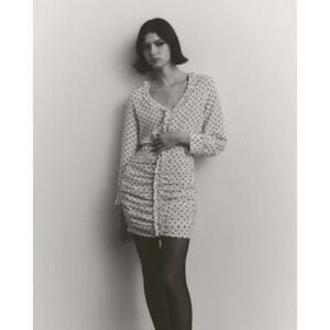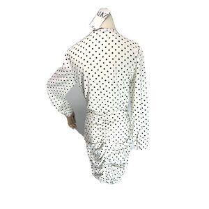 New Zara Women White Black Polka Dot Mini Dress Ruched Draped