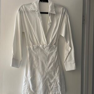 Effortless elegance meets modern minimalism in this stunning Zara dress (size XS) featuring a unique two-in-one design — a crisp white blouse seamlessly attached to a matching skirt. It gives the look of a perfectly styled outfit with none of the effort!